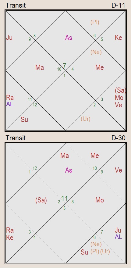 seeing death. Rudramsa (D-11) shows the forces of death and destruction and it can also give insight into death. D-30 shows one’s evils and punishment for the evils. Death can be a punishment for one’s evils and so we should look at D-30 also. However, the most important chart is the rasi chart. The 3rd and 8th houses are the houses of life. ...