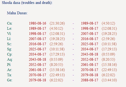 ... Each chart has some rasis and planets that are called marakas (killers). Since death is an event relating to the physical existence, rasi chart is of utmost importance in