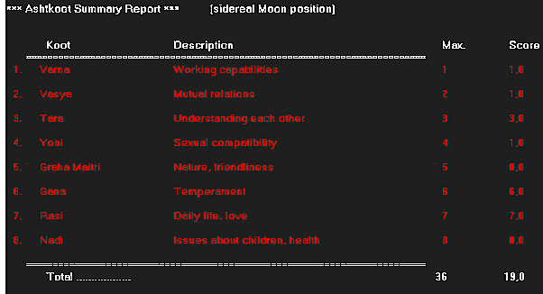 Vedische Partnervergleiche, Ashkoot-Compatibility , Kuja Dosha etc.