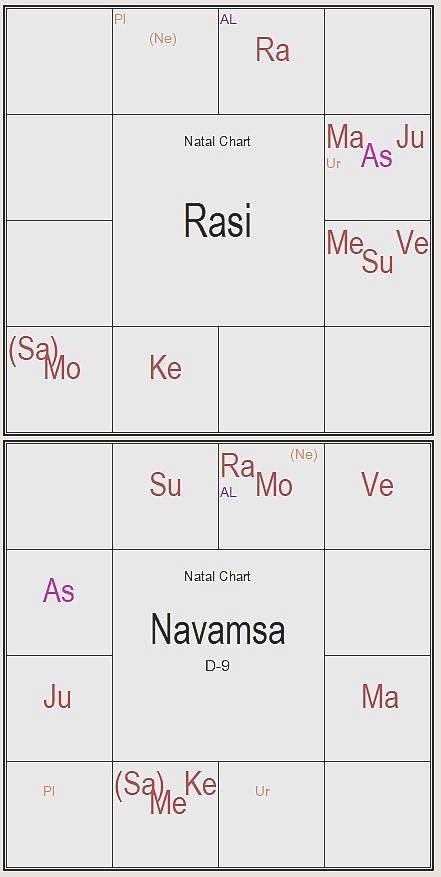 - Dabei wird besonders beachtet, ob das 7. und 8. Haus gut bestrahlt sind. Befindet sich dort der siderische Mars (Kuja Dosha), kann es zu Schwierigkeiten in der Partnerschaft kommen.